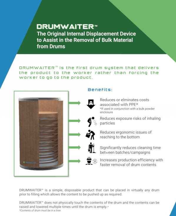 In 2015 they turned their attention to the need for a safer method of handling bulk toxic and highly potent pharmaceutical and biopharmaceutical agents and thus Drumwaiter was born.